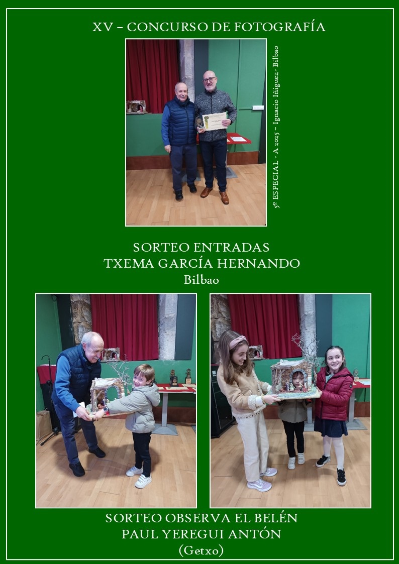 Comenzamos con una proyección de las exposiciones que se han realizado en esta campaña, una menos que en años anteriores por la baja del Itsasmuseum al tener todos sus espacios ocupados con otras actividades, continuando con la presentación de los premiados en el LXVII – CONCURSO PROVINCIAL DE BELENES DE HOGAR que se viene convocando desde la fundación de nuestra asociación en el año 1958 y el XV CONCURSO DE FOTOGRAFÍA y cuya fotografía ganadora será el cartel anunciador de nuestra próxima campaña, en este concurso haya que resaltar la enorme participación de fotografías que se han presentado este año, habiendo  llegado a las  58 y muchas de ellas de gran calidad.