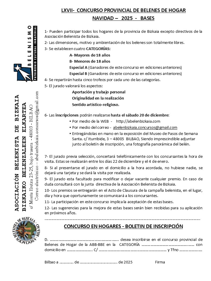 LXVII-Concurso Provincial de Belenes de Hogar-Etxeko Jaiotza Lehiaketa
