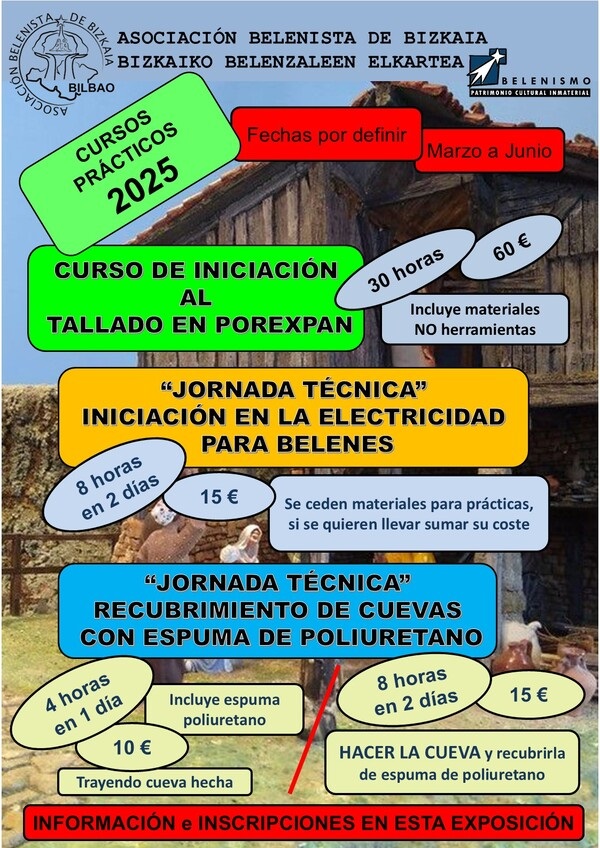 Para el año 2025 hemos ampliado nuestra oferta formativa de cursos y “Jornadas Técnicas”, habiéndose programado tres cursos, y por decisión de la Junta Directiva y para evitar lo del año pasado, que no llegamos a impartir los cursos, se han adelantado las fechas para su impartición para evitar que el trabajo en la realización de belenes nos ocupen los espacios disponibles en los talleres.