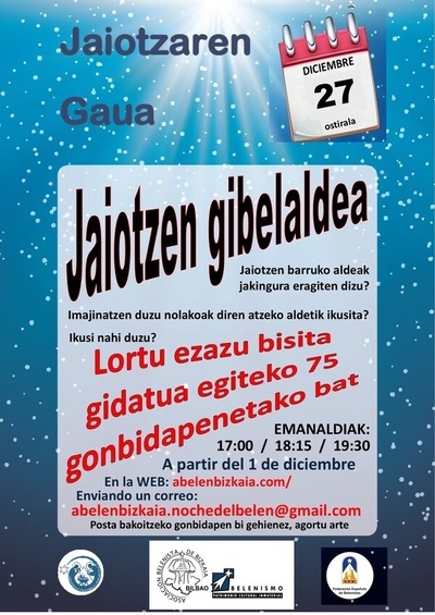 Como en otras ocasiones lo hemos denominado “LA NOCHE DEL BELÉN, LA TRASTIENDA DEL BELÉN” y repetimos la experiencia de los últimos años dada la acogida del acto y lo contenta que sale la gente del mismo. Realizamos tres presentaciones con 1:30 h de duración cada una de ellas, 1:15 de visita y 15 minutos para el cambio de invitados. Ya que la misma se puede realizar de manera gratuita, solicitando por medio de nuestra WEB hasta dos entradas, por cada e_mail recibido.