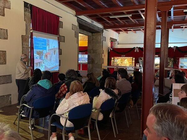 Durante el acto se hace una presentación de como se realiza el montaje de nuestra Exposición Social y una somera explicación de cada uno de los belenes representados esa campaña. Y posteriormente se visualiza los entresijos de los belenes viendo sus traseras y los trucos y montajes que hay realizados en la parte posterior de los mismos.